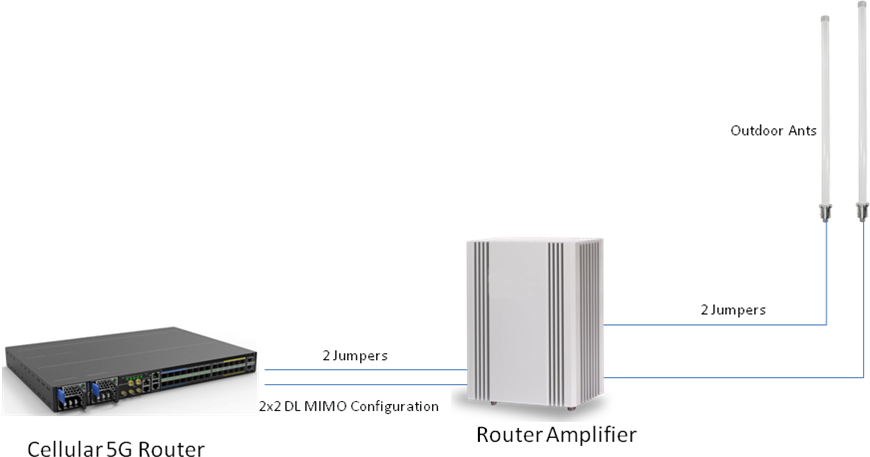 For routers with 2 radios, the Router Amp reduces the number of cables to the outdoor antennas by a factor of 2.