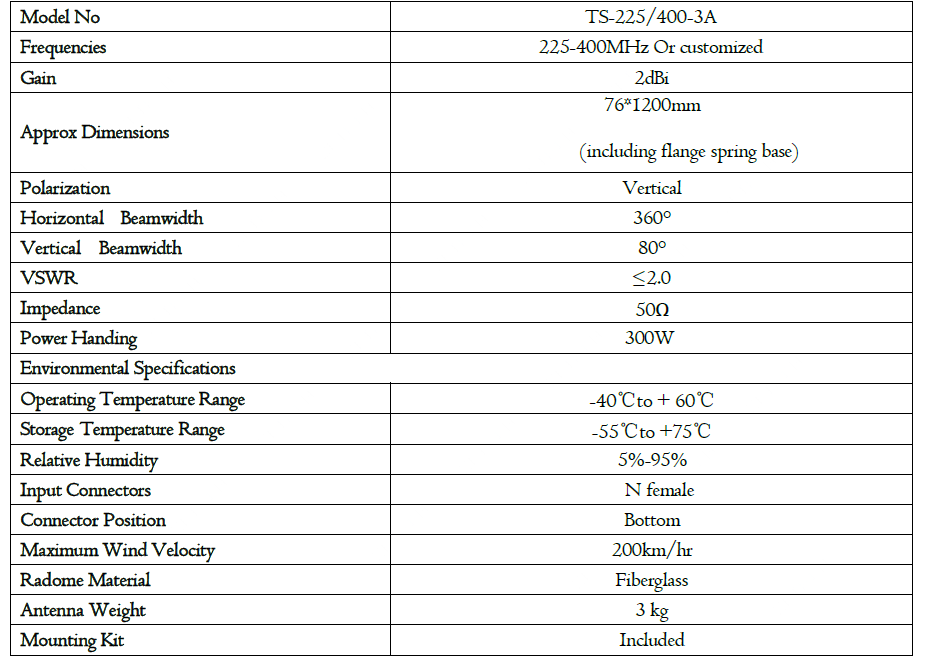 225-400MHz寬頻全向天線(Broadband Omni Directional Antenna)